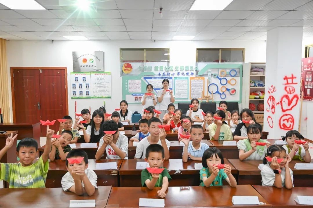 实践队员带领小朋友们折红船