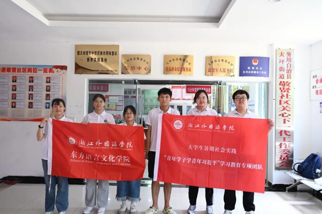 务川仡佬族苗族自治县位于贵州省东北部,是一个以仡佬族和苗族为主要民族的少数民族自治县,敬贤社区作为一个易地搬迁的安置新社区,聚集着来自周边16个镇(乡、街道)的搬迁群众,由于当地经济发展基础较为薄弱,大量青壮年外出务工,许多孩子都和爷爷奶奶一起生活,缺少父母的陪伴与教育。鉴于此,实践团队围绕着少数民族地区搬迁居民的社会融入以及社区儿童们的生活和教育情况开展了调研活动。近年来,浙外青年学子的千里之行见证了敬贤社区的巨大改变,无论是社区的基础设施、社区治理结构还是当地人民的幸福指数都有了质的飞跃。今年是浙外学子第四次来到务川县开展“青年学子学青年习近平”学习教育实践活动,队员们纷纷表示希望能利用所学的知识为社区儿童们打开一扇了解世界的大门,为乡村振兴贡献自己的一份力量,在未来继续展现浙外青年担当。
