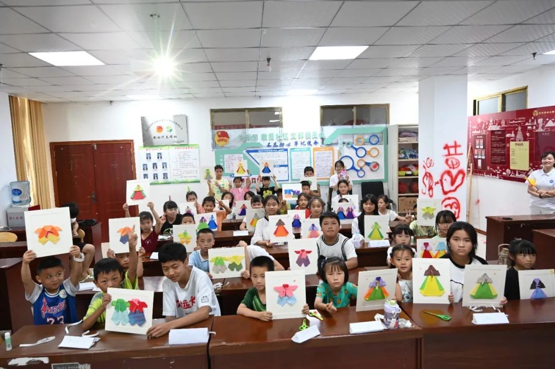 演出结束后,小老师们分发了为小朋友们准备的各种奖品。“老师,你们下次什么时候来呀?”小朋友们纷纷拉着小老师们的手,依依不舍地互相告别。一位小朋友送给了小老师们一盒她亲手叠的星星纸,其中每张纸上都写下了她对小老师们的祝愿与自己的期许。小小的星星,承载着如漫天星河般绚丽多彩的感情。