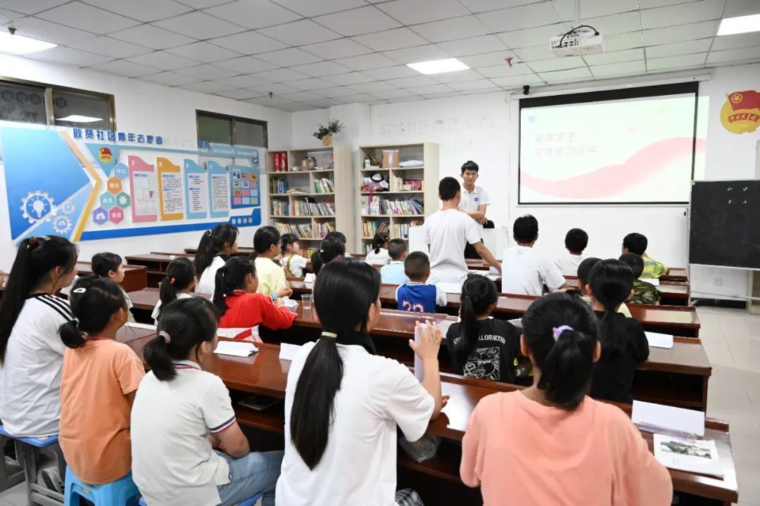 今年是新中国成立75周年,作为新时代青年,不仅自己要砥砺奋进,还要传播青春奋斗的正能量,让更多的人加入其中。队员们把“青年学子学青年习近平”学习教育课程融入课堂教学内容中,“1969年1月,不满16岁的习近平来到陕北梁家河村插队。在梁家河的七年岁月里,他过‘五关’、带领村民建沼气池、为老百姓办实事……”实践队员们讲述了习近平作为知青在陕西省延川县文安驿公社梁家河大队插队的故事。他们勉励孩子们要有理想、敢担当、能吃苦、肯奋斗,在新时代新征程上展现自信自强、刚健有为的精神风貌。