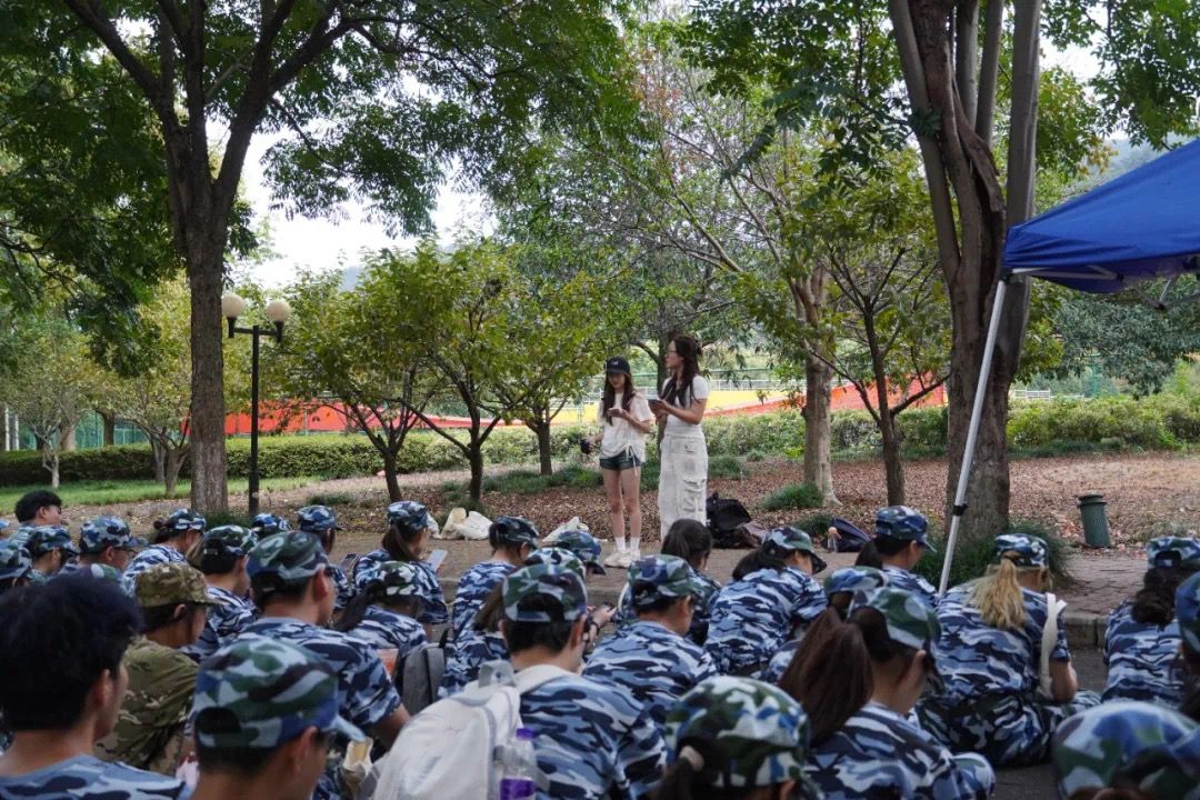 闲暇时刻,在教官的带领下同学们也体验了丰富的游戏活动。同学们之间的距离迅速拉近,初识的隔阂与羞怯逐渐打破,一个个充满凝聚力的班集体逐渐形成。