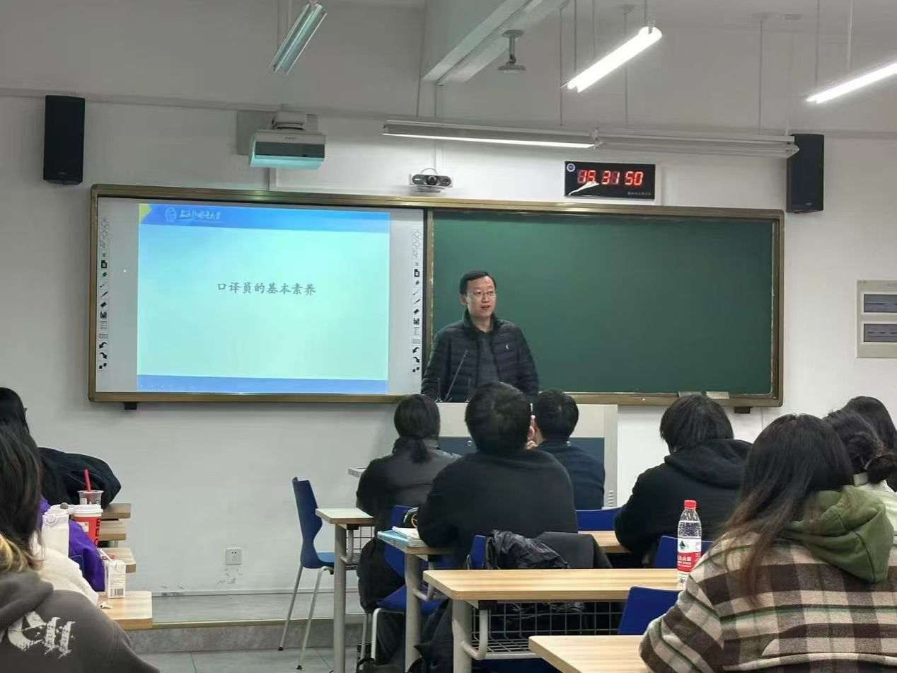 高强度的工作压力,需要长期坚持不懈地学习,同时在工作中保持高度专注和对细节的敏感性。通过这些生动的实例,他启发学生们思考新时代口译员的责任感与使命感,并鼓励大家以翻译技能为国奉献。