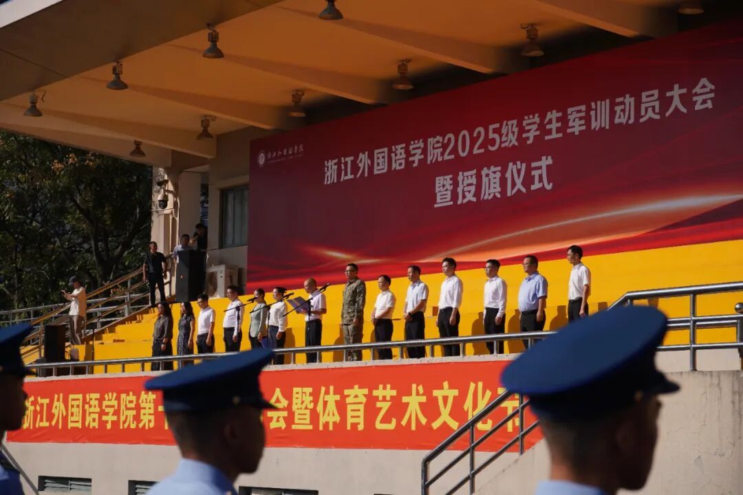 10月11日上午,2025级学生军训动员大会暨授旗仪式在田径场举行。副校长、党委委员张梁出席活动并讲话。张梁强调,军训是学生履行兵役义务、接受国防教育的基本形式,也是“青年学子学青年习近平”的重要实践。他希望浙外学子珍惜军训机会,在自律、坚持、共融中完成蜕变。