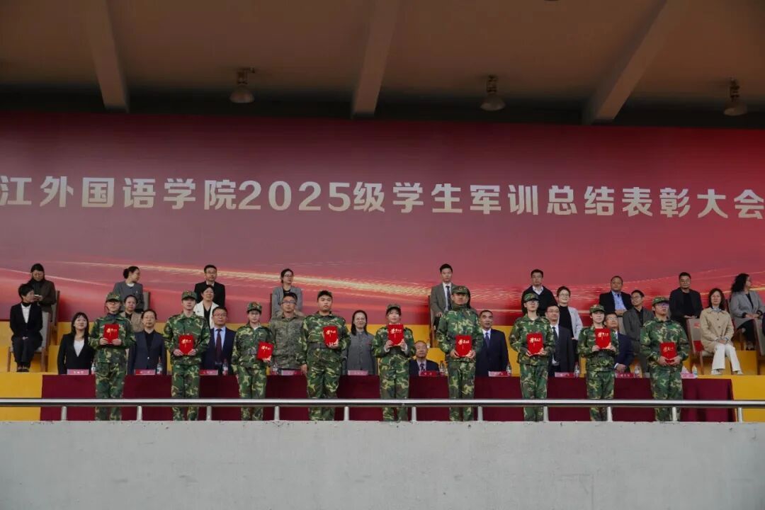 所在的二营凭借出色的整体表现和严格的作风纪律,荣获“优秀方阵”“队列会操优胜连”称号。同时,多名同学荣获“军训先进个人”荣誉。当获奖代表从领导手中接过沉甸甸的证书时,全场报以最热烈的掌声。这份荣誉,属于每一位在骄阳下坚持的东语学子,是对他们拼搏与成长的最佳褒奖。