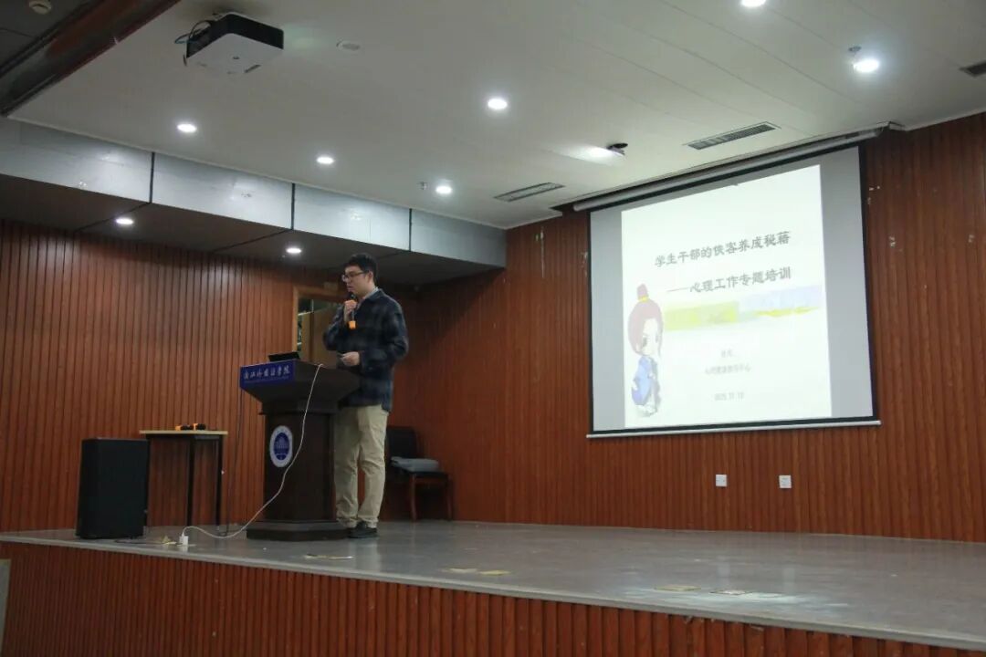 在博文堂二楼报告厅举办心理网格化信息员培训会。学校学生处心理健康教育中心专职教师杜光担任主讲,学院240余名各年级班长、新生委员、学习委员及寝室长参与培训。