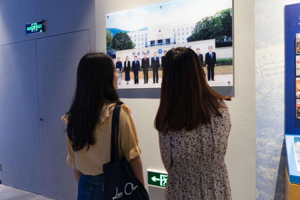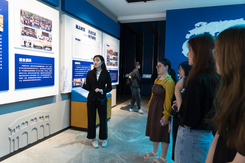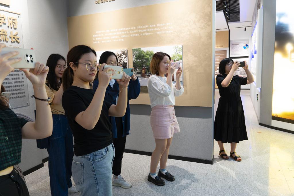 在引导员的介绍下,同学们感受到了学校与师生之间的韧性联系,品味出先知校后爱校的含义。看到让人如至其境的体验室和精致的校内布局模型,同学们都对这全新的校史馆赞叹不已。