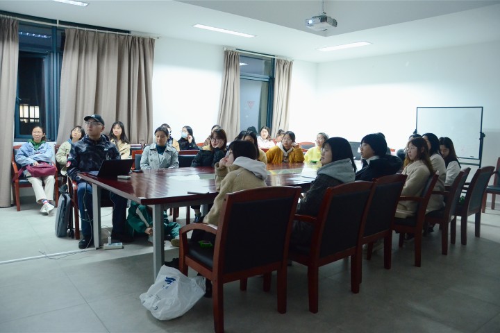 学院党总支副书记方盼老师、学生第二党支部书记郑周璇老师来到会议室和同学们共同观看。