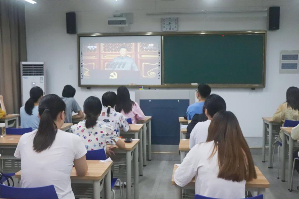 八点整,庆祝大会正式开始。全体师生齐聚教室,聚精会神聆听习近平总书记的大会重要讲话,大家悉心聆听,犹如置身大会现场,时不时响起阵阵掌声。
