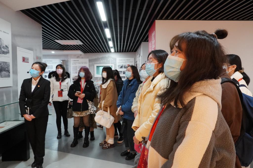 在学生第一党支部书记杜茜老师、第二党支部书记郑周璇老师,辅导员张志华老师的带领下,大家跟随讲解员沿着“杭州青年为建设新中国而奋斗”“杭州青年积极参加社会主义建设”“杭州青年在建设中国特色社会主义中建功立业”的篇章轨迹,体会革命的艰辛和先烈坚定的理想信念,感受杭州青年在中国共产党领导下投身革命、建设和改革的蓬勃热情。馆内210余件展品将同学们带回过去的杭州,从斑驳生锈中看过去人们寄情于物的信念,感悟胜利的来之不易。看到展览墙上布满浙外“小青荷”志愿者的照片,同学们感受到了身为浙外学子的骄傲和认同感,学习以往浙外学子的志愿服务精神,将个人融入到时代中去,紧跟党的步伐。