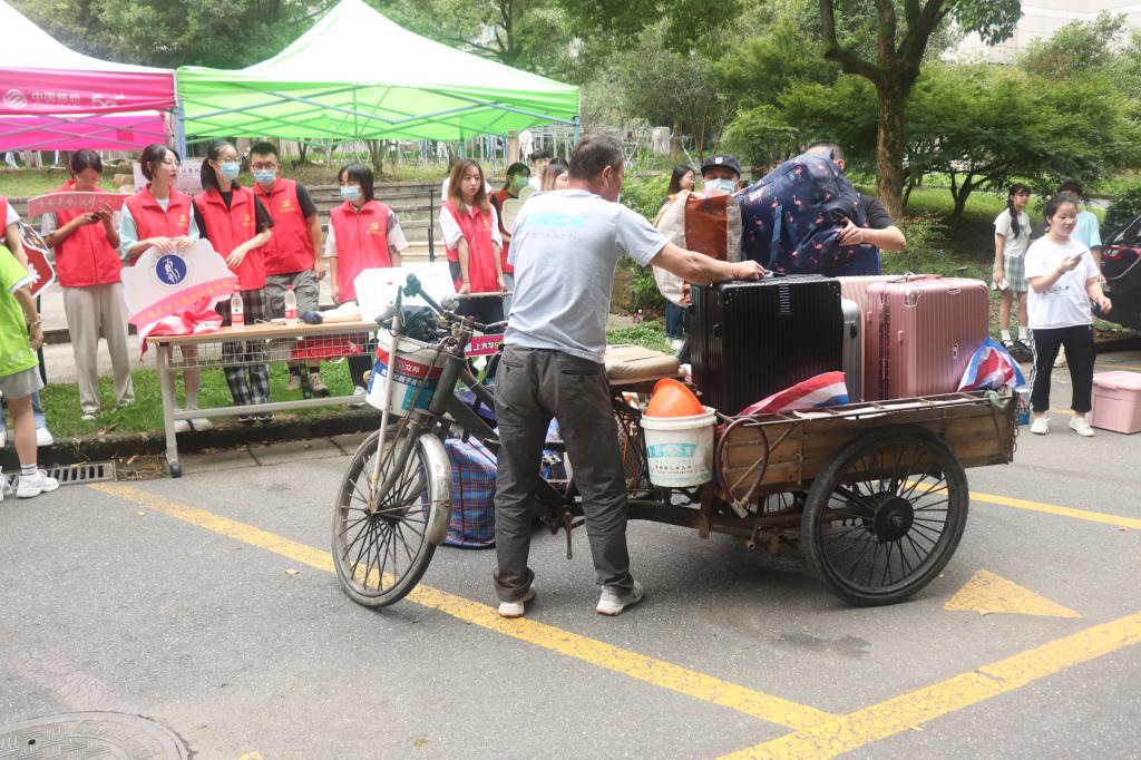 迎新情况,并向现场的志愿者们送去关怀和慰问。洪校长亲切地对班助们说道:“去年是你们的学长学姐迎接你们,今年你们以学长学姐的身份迎接新生,要把友爱接力传承下去,帮助新生顺利入校报到。”