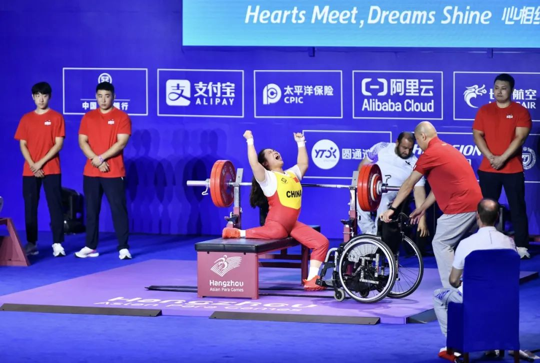 10月26日下午,在杭州第4届亚残运会女子举重67公斤级决赛中,里约、东京两届残奥会金牌得主、肉漫屋