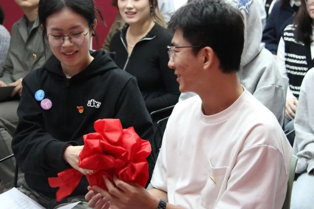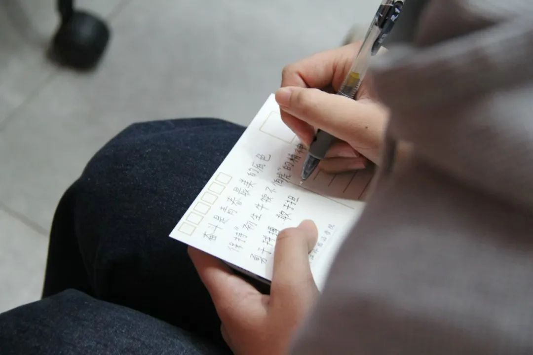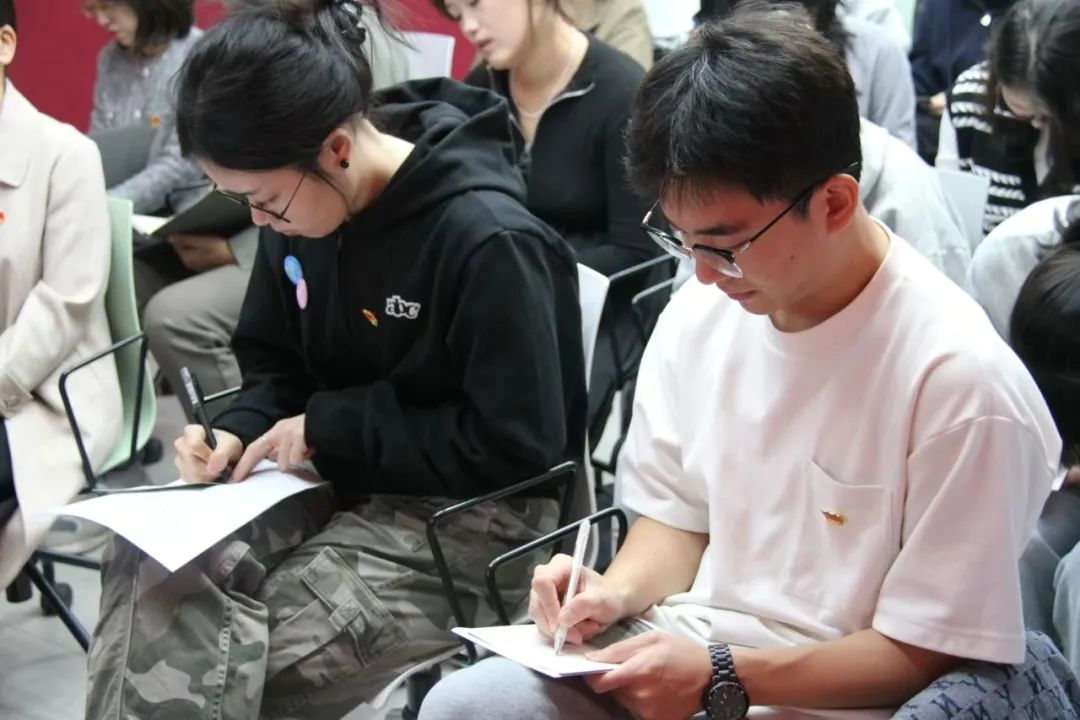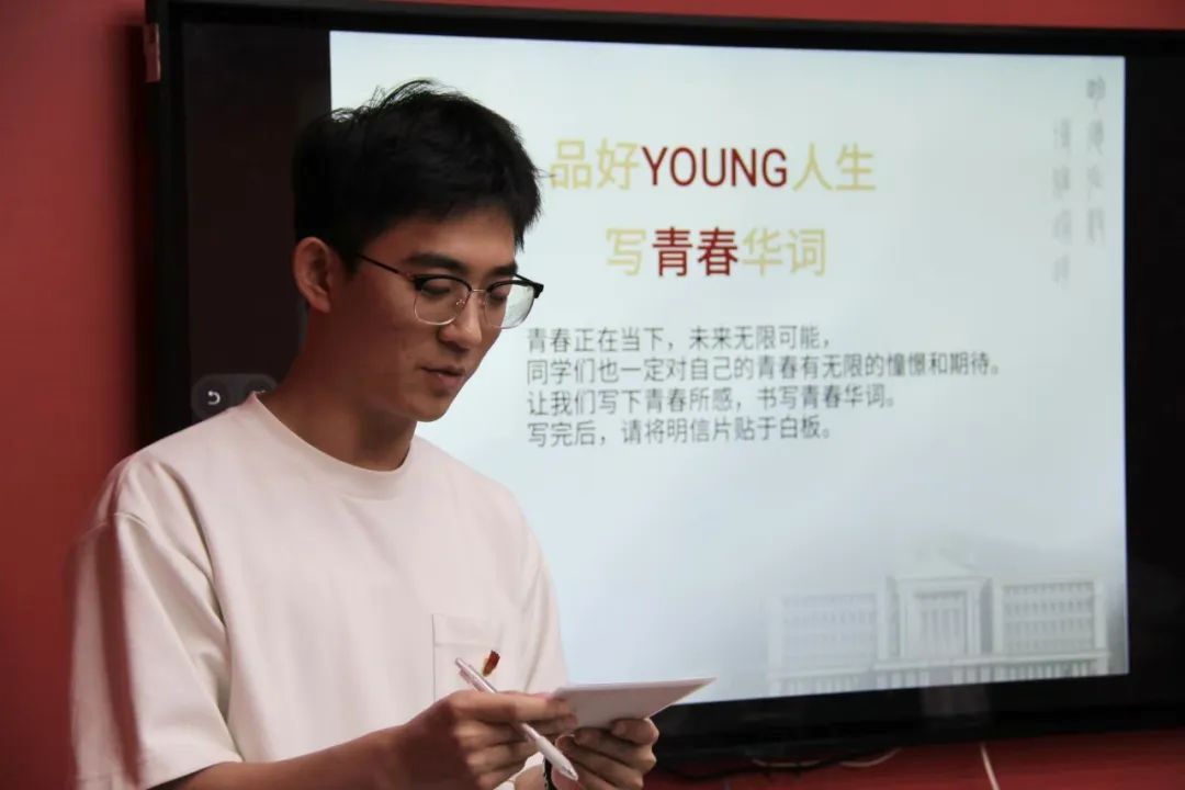 随后,蔡胜邀请同学们在书签上写下自己对青春的理解。同学们提笔抒怀,并踊跃上台,分享自己眼中的青春以及该如何度过自己的青春。